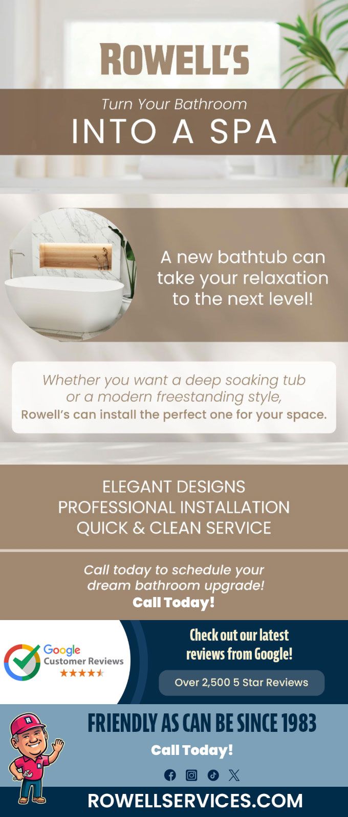 Whether you want a deep soaking tub or a modern freestanding style, Rowell's can install the perfect one for your space.