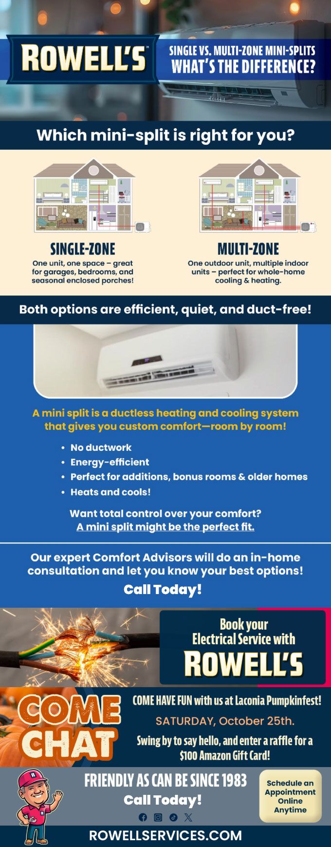 "Friendly As Can Be Since 1983!" When you need help with your plumbing, drains, heating, cooling or electrical in Goffstown, you can always rely on Rowell's Services! Call us now or book online!